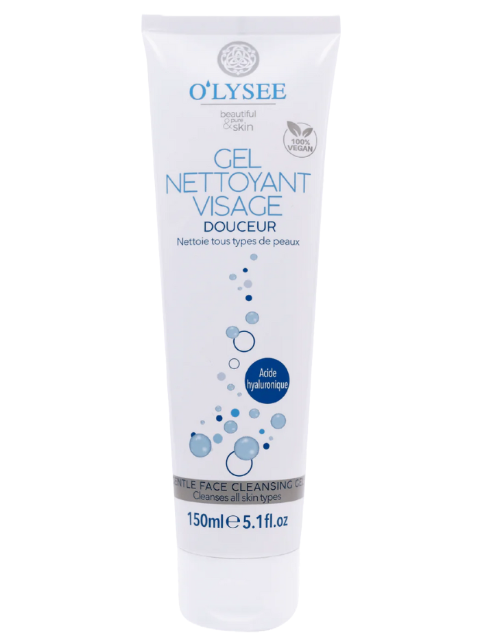 O'lysée gentle facial cleansing gel with hyaluronic acid is specially designed to cleanse all skin types while leaving the skin hydrated.