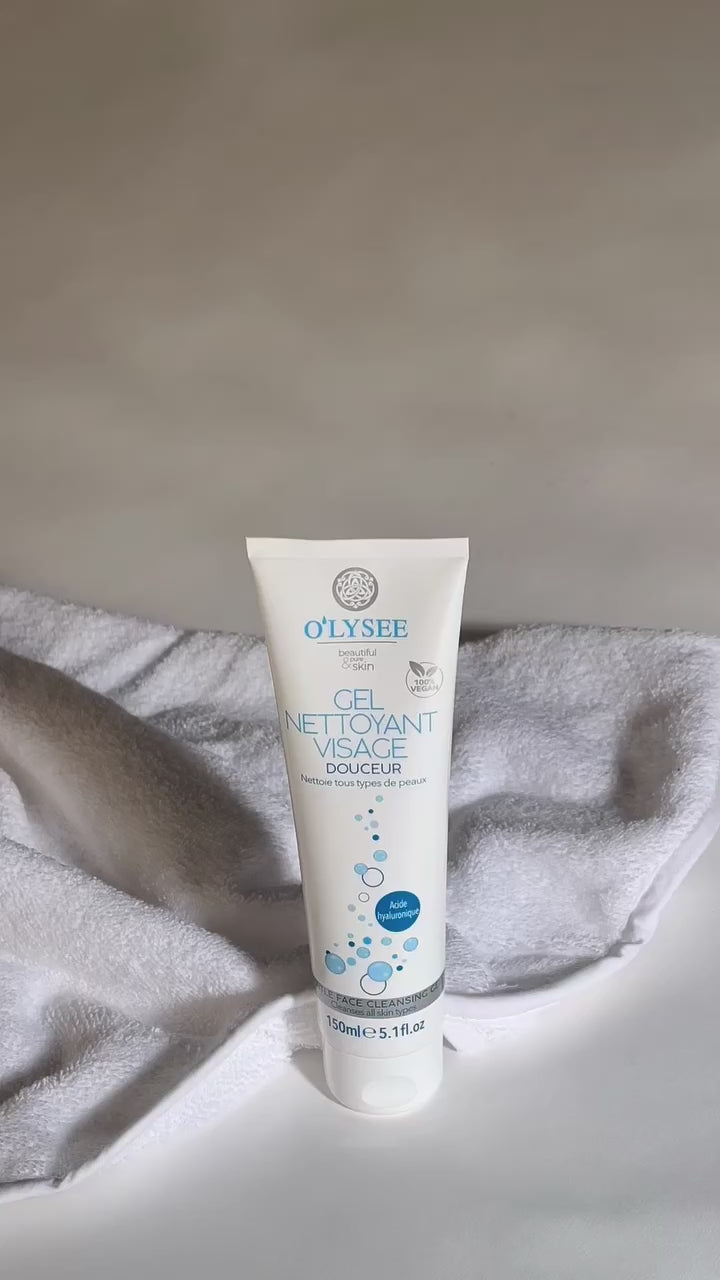 O'lysée Gentle Facial Cleansing Gel is specially designed to cleanse all skin types. Its delicate, foaming texture gently cleanses the face by removing residue, makeup and sebum . Our formula enriched with glycerin and hyaluronic acid helps the skin respect its natural moisture balance.