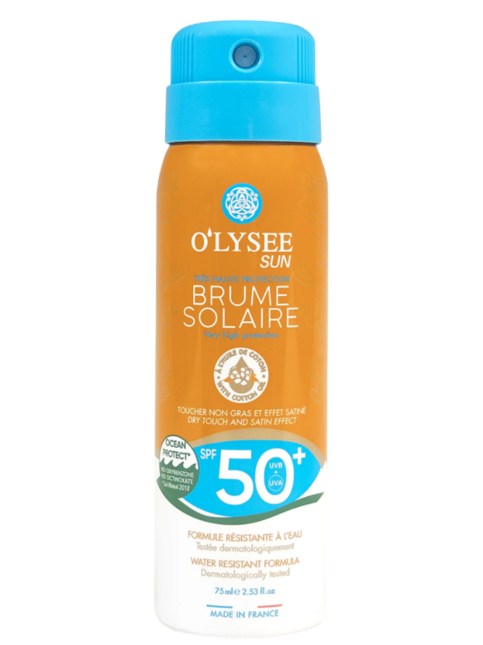 Notre brume solaire très haute protection O’lysée Sun soin SPF 50+ enrichie à l’huile de coton laisse une odeur douce, un effet satiné invisible sur la peau et une sensation agréable non grasse. Les systèmes de filtres anti UVA et UVB présents dans notre produit vous garantissent une exposition au soleil en toute sécurité. Nos formules sont ultralégères, idéales pour toute la famille et résistantes à l’eau pour vous assurer une protection efficace même lors de vos baignades.
