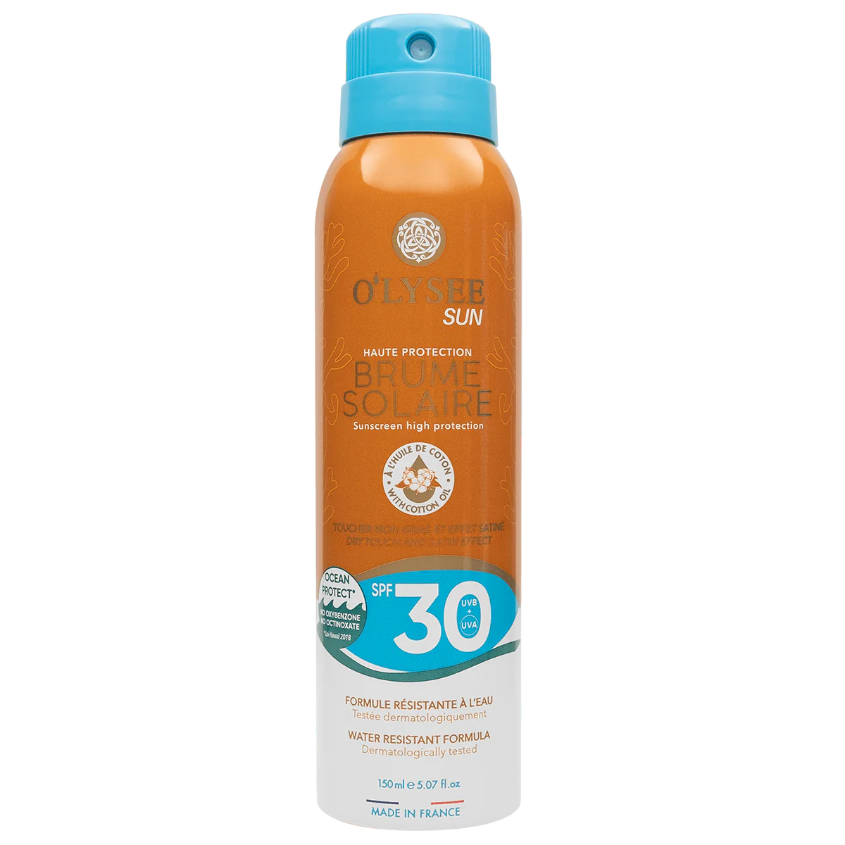 Notre brume solaire très haute protection O’lysée Sun soin SPF 30 enrichie à l’huile de coton laisse une odeur douce, un effet satiné invisible sur la peau et une sensation agréable non grasse. Les systèmes de filtres anti UVA et UVB présents dans notre produit vous garantissent une exposition au soleil en toute sécurité. Nos formules sont ultralégères, idéales pour toute la famille et résistantes à l’eau pour vous assurer une protection efficace même lors de vos baignades. En plus de vous protéger, notre soin respecte également l’écosystème marin. Cette formule est conforme à la loi Hawaii adoptée en 2018 et mise en place pour la préservation de l’écosystème marin. Nos produits sont faciles à utiliser, à renouveler pendant et après l’exposition au soleil. Petit plus, la fermeture de ce produit est sécurisée ce qui évite le risque de coulures et d’évaporation.
